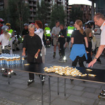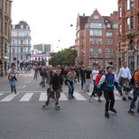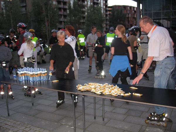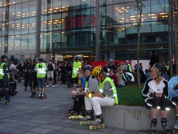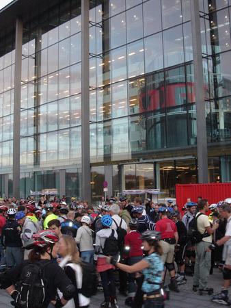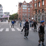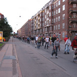 Sidste gang - d. 17. august - tog Friday Night Skate på besøg i Ørestad. Vi lavede en lille koncert i Tietgen-kollegiets gård, hvor Public Service Festivalen var i gang. 3-400 mennesker var med til at gøre denne tur ud i Ørestaden til en rigtig god aften.